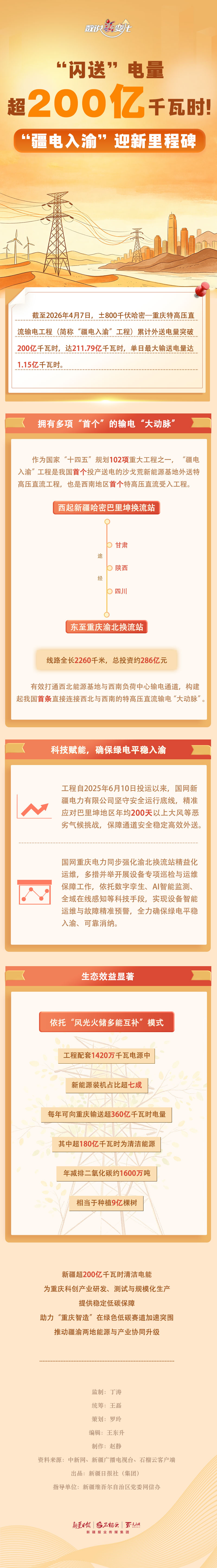 截至2026年4月7日,“疆电入渝”工程累计外送电量已突破200亿千瓦时,达到211.79亿千瓦时。其中,单日最大输送电量达1.15亿千瓦时178炒股配资,展现出强劲的输电能力。这一工程不仅有力推动了跨区域能源资源的优化配置,也为西南地区的绿色低碳转型与高质量发展提供了坚实的电力保障。本期《数说“新”变化》带您一同关注。